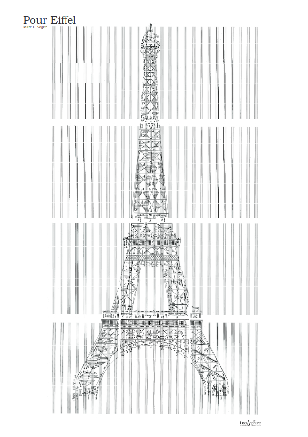 Affiche décorative unique, représentant l’œuvre musicale conceptuelle « Pour Eiffel » de Marc Vogler, en forme de la célèbre Tour de Gustave Eiffel.