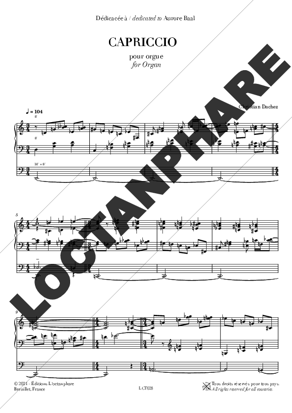 Capriccio est une pièce pour orgue solo, composée en 2016 et dédiée à Aurore Baal. Création par la dédicataire le 18 mai 2024 à Arrau, Suisse.