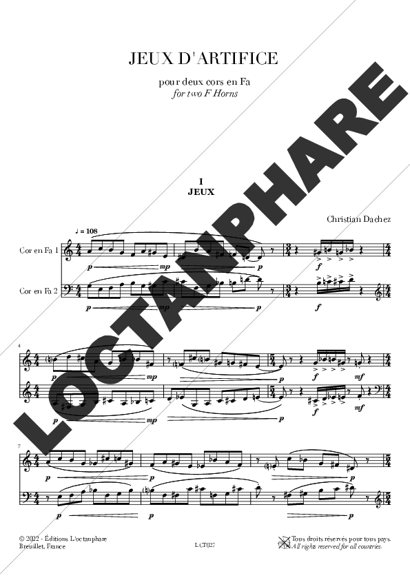 Jeux d’artifice est une pièce pour deux cors en Fa.