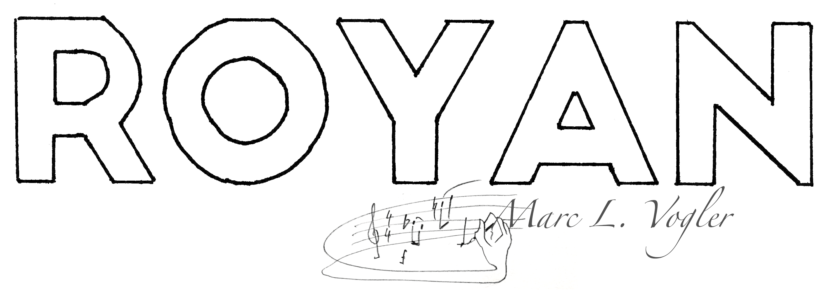 Au dos : visuel de « ROYAN », l’œuvre musicale conceptuelle de Marc Vogler pour violon et orgue, en forme de l’église Notre-Dame de Royan (France), commandée par l’Association des Amis des Orgues de Royan à l’occasion des 60 ans du grand orgue Boisseau.